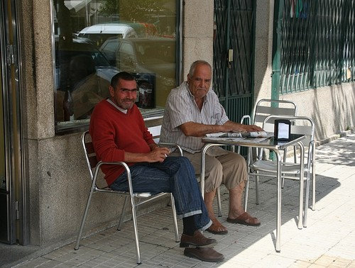 toni costa e berto chiquera na esplanada do café estrela